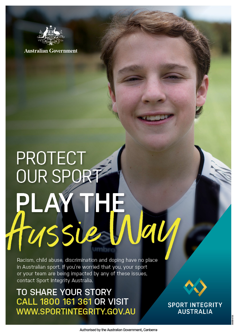 Advertisement: Let's protect sport together. Share your story about an integrity issue you have experienced. Call the Safe Sport Hotline or visit the Sport Integrity Australia website.